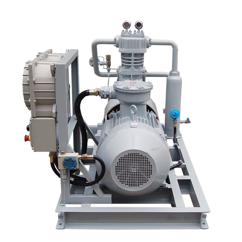環己烷壓縮機是我公司新型產品,它集壓縮機、氣液分離器、安全閥冷卻器、電動機等為一體,成一完整的機組。具有功能多、體積小、重量輕、功率小、運行平穩可靠等特點,并有良好的安全性能。它為輸送氫氣,可為用戶最大限度地創造經濟效益。由于采用獨特的無油潤滑設計,氣缸內無需用油潤滑,因而不會對介質造成污染,使被輸送物質保持純凈。本機設計成機組型式,許多管線上的附件都安裝在機組上,省卻了氣液分離器、穩壓罐、安全閥、進氣過濾器等,減小了機房的面積,減少了操作維護工作量,節省了投資。