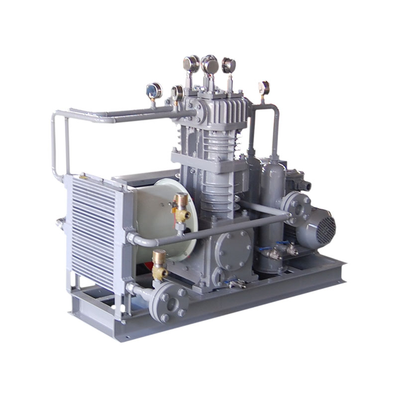 環氧乙烷壓縮機是我公司新型產品,它集壓縮機、氣液分離器、安全閥冷卻器、電動機等為一體,成一完整的機組。具有功能多、體積小、重量輕、功率小、運行平穩可靠等特點,并有良好的安全性能。由于采用獨特的無油潤滑設計,氣缸內無需用油潤滑,因而不會對介質造成污染,使被輸送物質保持純凈。本機設計成機組型式,許多管線上的附件都安裝在機組上,省卻了氣液分離器、穩壓罐、安全閥、進氣過濾器等,減小了機房的面積,減少了操作維護工作量,節省了投資。