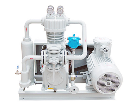 氣氨壓縮機壓縮機是我公司新型產品,它集壓縮機、氣液分離器、安全閥冷卻器、電動機等為一體,成一完整的機組。具有功能多、體積小、重量輕、功率小、運行平穩可靠等特點,并有良好的安全性能。它為輸送氫氣,可為用戶最大限度地創造經濟效益。由于采用獨特的無油潤滑設計,氣缸內無需用油潤滑,因而不會對介質造成污染,使被輸送物質保持純凈。本機設計成機組型式,許多管線上的附件都安裝在機組上,省卻了氣液分離器、穩壓罐、安全閥、進氣過濾器等,減小了機房的面積,減少了操作維護工作量,節省了投資。
